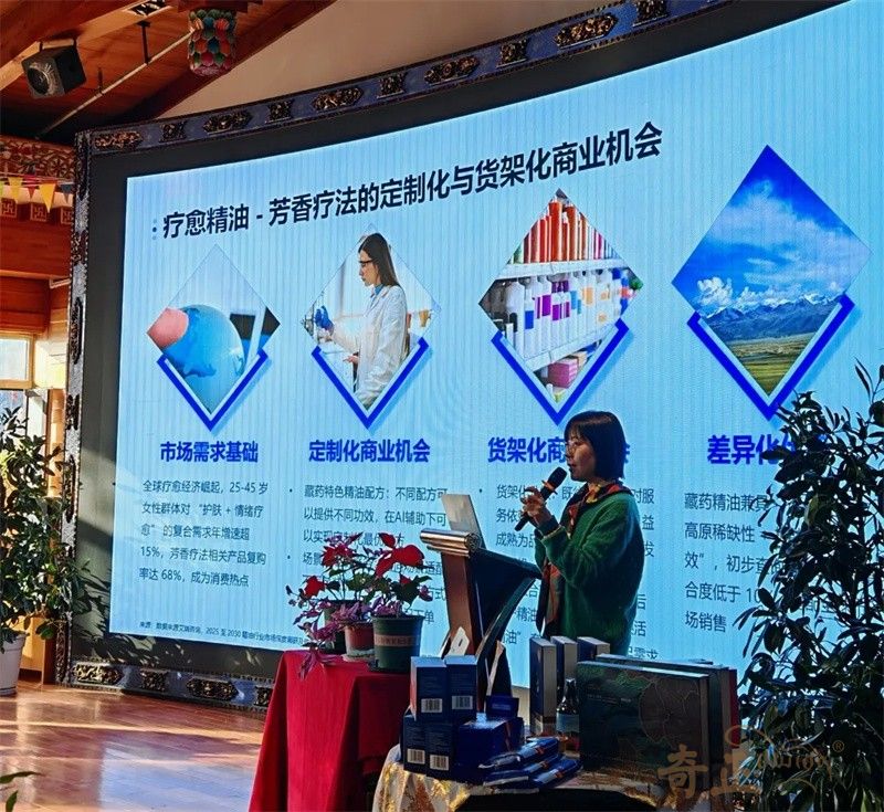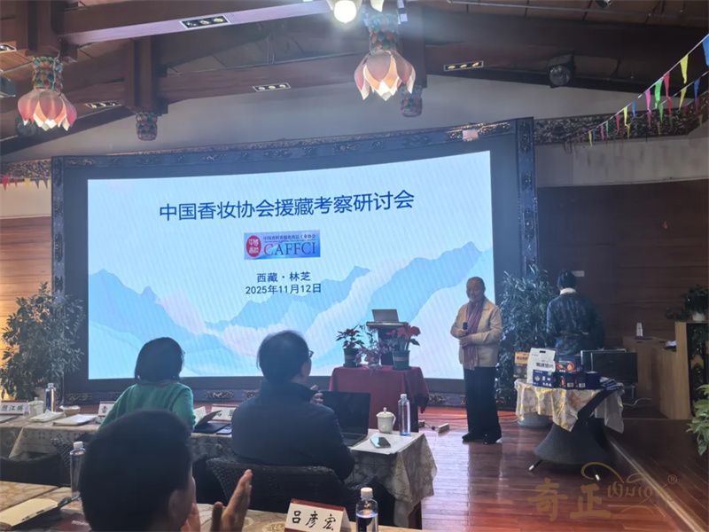 考察期间,中国香精香料化妆品工业协会副秘书长兼办公室主任李英,系统介绍了协会在政策解读、法规制定、技术创新、产业发展、国际合作交流及信息服务等方面的核心职能,清晰阐释了协会作为“政府与企业间桥梁纽带”的作用,为双方未来更紧密合作奠定坚实基础。奇正集团林芝雪域公司综合事务部副经理罗珍向专家团简要汇报了集团发展历程、企业理念,以及各业务板块在所属领域取得的突出成就。针对藏药化妆品未来具体发展方向,股份公司战略规划部总监兼董事长助理石翠分享了以“喜玛雅拉”为核心的特色化妆品品牌蓝图,清晰勾勒出“藏地文化+现代美学”融合的产品开发路径;种植负责人牟思维博士从科学维度,详细汇报了公司在西藏特色植物原料研究进展、成分功效及可持续利用方面的探索实践,充分展现了奇正在原料端的扎实基础与科研硬实力;研发工程师俞金蓉分享了藏药养生护肤的“三因理论”与阿育吠陀理论,为产品研发提供了传统医学支撑。